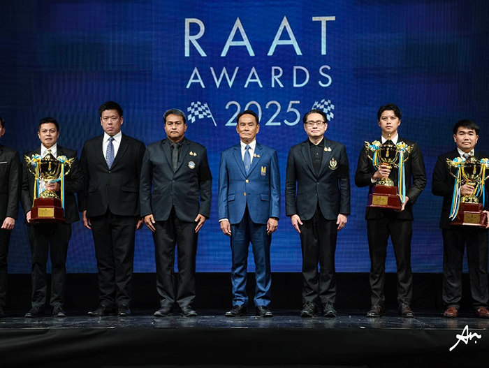 กรุงเทพมหานคร – ราชยานยนต์สมาคมแห่งประเทศไทย ในพระบรมราชูปถัมภ์ สมาคมกีฬา (ร.ย.ส.ท.) โดย นายพฤฒิรัตน์ รัตนกุล เสรีเริงฤทธิ์ นายกสมาคมฯ ได้จัดงานพิธีมอบถ้วยพระราชทาน และถ้วยรางวัลเกียรติยศประจำปี RAAT AWARDS 2025 เพื่อเชิดชูเกียรติและสร้างขวัญกำลังใจให้แก่นักแข่งที่สร้างผลงานอันโดดเด่น และประสบความสำเร็จในระดับประเทศและนานาชาติตลอดฤดูกาลที่ผ่านมา และนับเป็นพระมหากรุณาธิคุณอย่างหาที่สุดมิได้ ที่สมาคมฯ ได้รับพระมหากรุณาธิคุณโปรดเกล้าฯ พระราชทานถ้วยรางวัลเพื่อสนับสนุนกิจกรรมกีฬายานยนต์ ซึ่งสร้างความเป็นสิริมงคลและความภาคภูมิใจสูงสุดแก่เหล่านักแข่ง ทีมแข่ง และบุคลากรในวงการยานยนต์ไทย